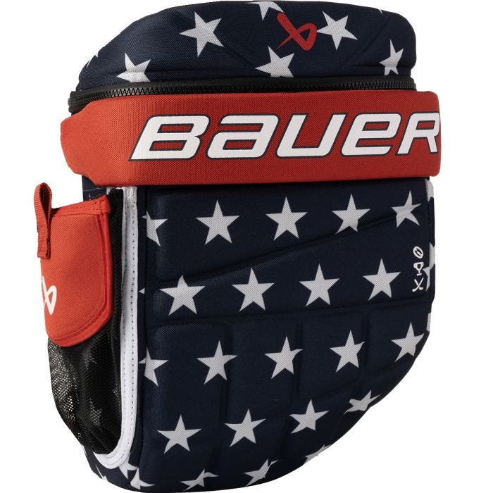 Велике основне відділення з мереживною блискавкою для ковзанів: закріплена міцними мереживними блискавками для ковзанів, молодіжна рукавичка Bauer забезпечує легкий доступ до книг, швидкозшивачів або пари молодіжних/юнацьких ковзанів і рукавичок, які зберігаються у великому м’якому відділенні.