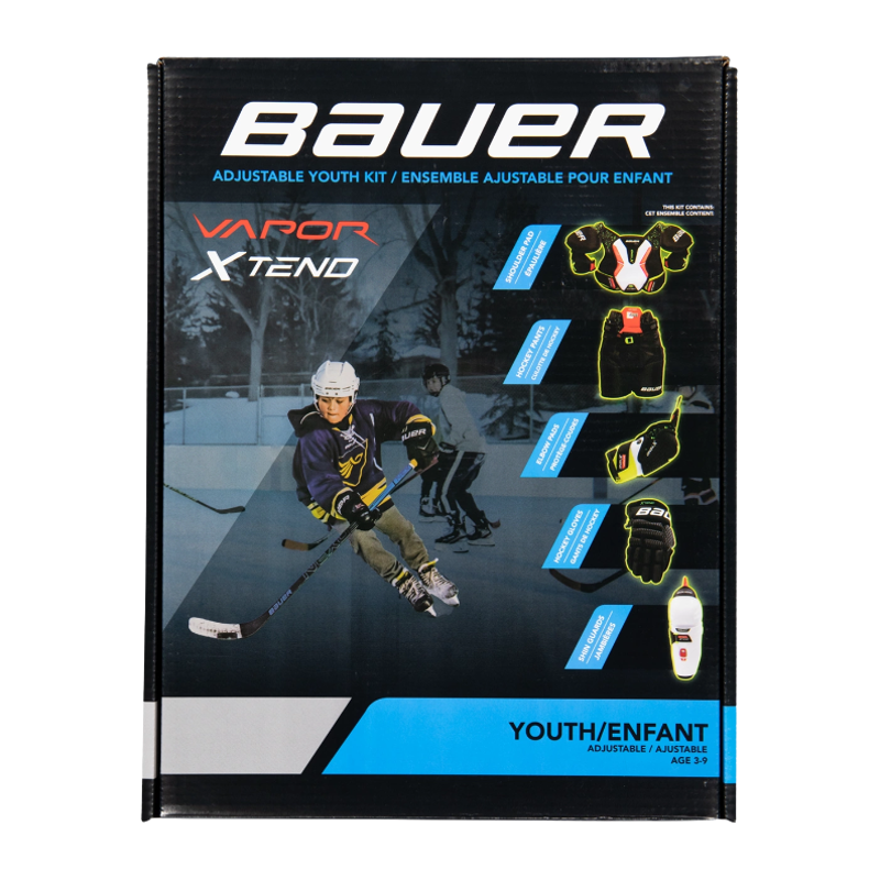 Набір має значну цінність, пропонуючи виняткову гнучкість і безпеку. Заохочуйте пристрасті своїх молодих хокеістів , купуючи в SCHEELS дитячий набір Bauer Vapor XTEND та інше спорядження преміум-класу.