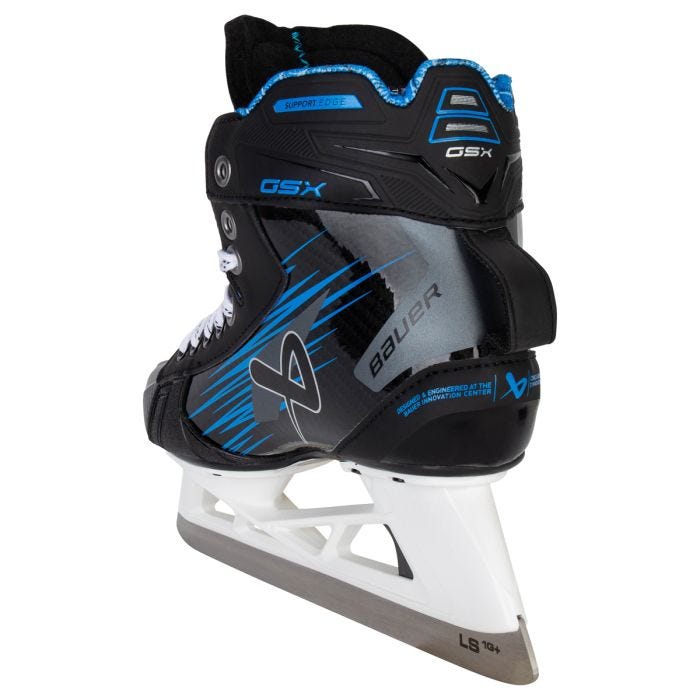 Композитне волокно з StanceFlex: воротарські ковзани 2024 GSX побудовані навколо високоміцної четверти композитного волокна; інтегрована з StanceFlex для підтримки щиколоток, одночасно дозволяючи більше згинатися вперед. Чверть волокнистого композиту Bauer повністю піддається термоформуванню для оптимального прилягання.