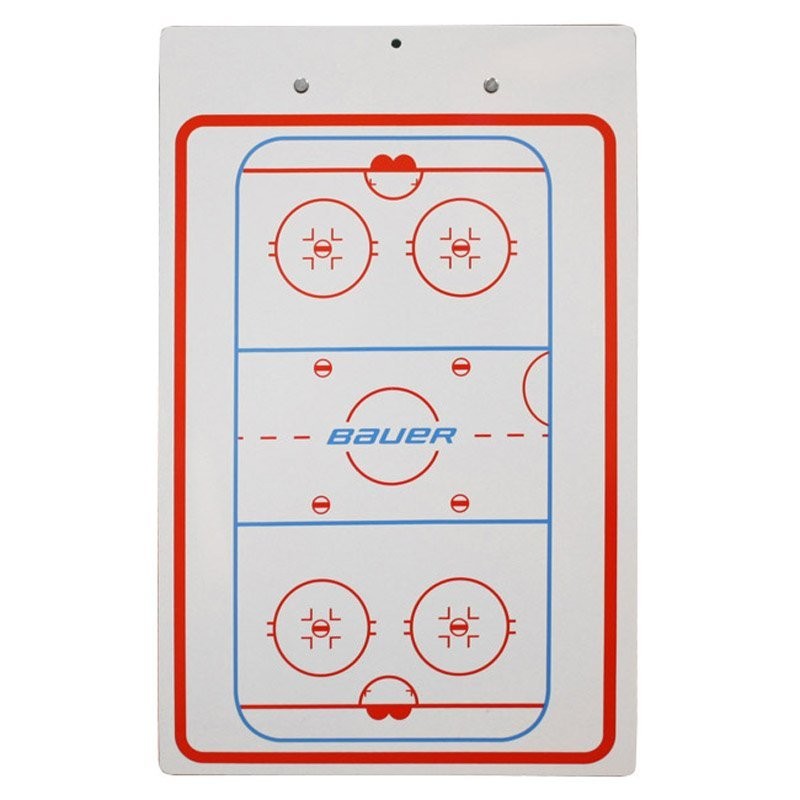 Маркер для сухого стирання в комплекті. Одна сторона дошки розмічається від червоної лінії до дощок. Інша сторона — повна довжина льоду.Затискач для зберігання необхідних паперів.