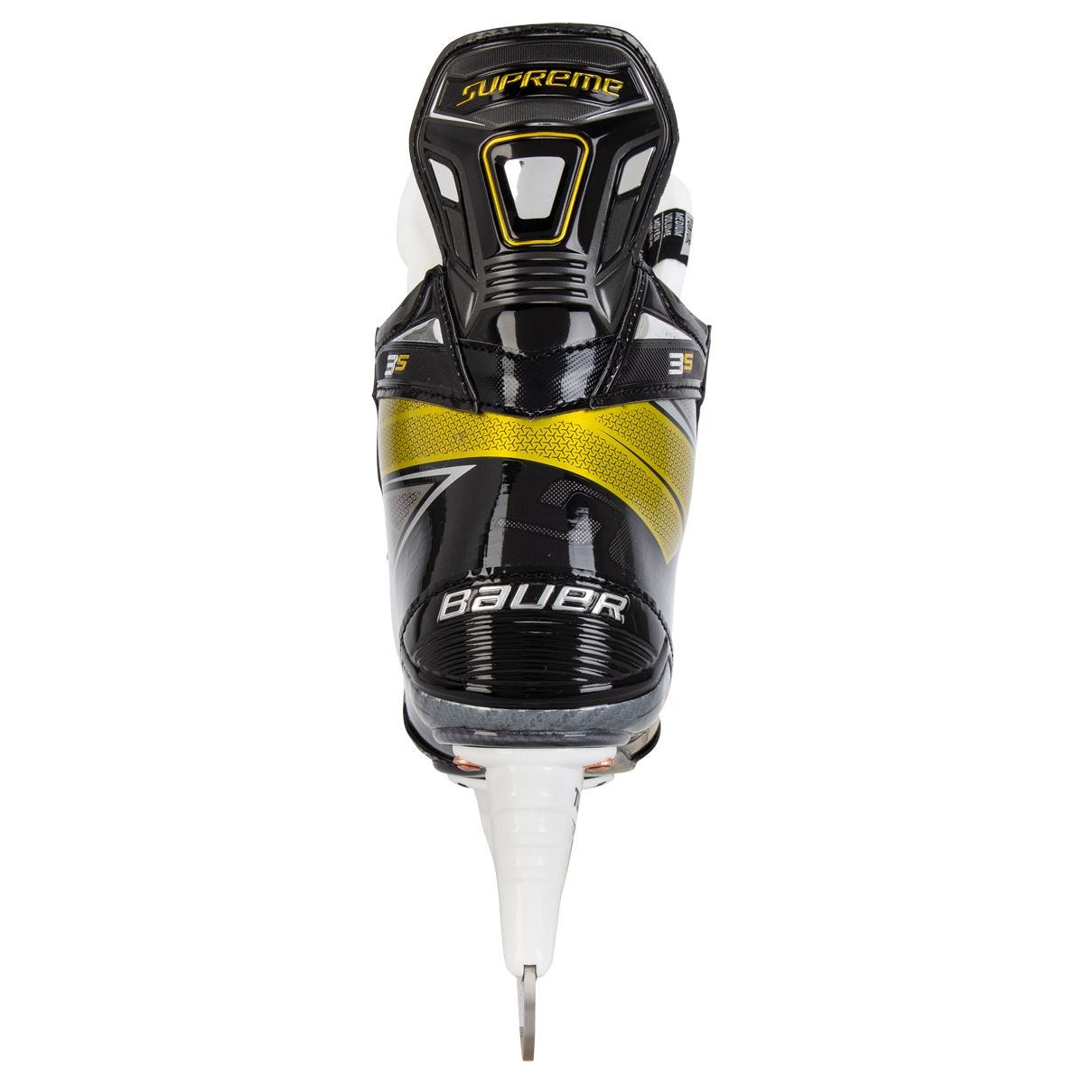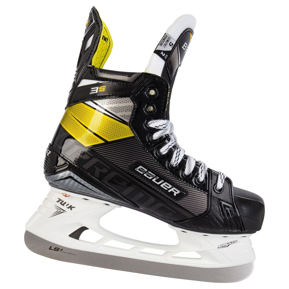 Ковзани польового гравця BAUER SUPREME 3S INT професійна, підросткова модель в лінійці Supreme. Коньки мають анатомічну посадку з новою системою Performance Fit, завдяки чому гравці з будь-якою шириною стопи зможуть знайти свою ідеальну посадку. Крім того, ботинки, виконані з композитного матеріалу Flex Composite, забезпечують відмінну жорсткість і підтримку, що напряму призводить до вибухової передачі енергії. Високоякісний процес виробництва Premium 3D-lasting Construction гарантує максимально точну та комфортну посадку ботинка навіть до процедури термоформування. В області лодижки розташовані легкі вкладки з пени AeroFoam, що володіють ефектом пам'яті, що забезпечує повний комфорт, необхідну підтримку і відмінну щільність посадки в області голеностопного суглоба. Внутрішній язичок має захисне покриття щільністю 48 oz. Внутрішня підкладка з гідрофобної мікрофібри забезпечує оптимальну герметичність і виключає будь-яке проскачування стопи всередині ботинки при русі, що дозволяє більш ефективно передавати зусилля при русі. Внутрішня стелька FormFit дозволяє надійно зафіксувати стопу, забезпечуючи комфортне положення ніг і роблячи передачу зусиль при русі більш ефективним. Легка підошва з ТПУ-пластику забезпечує максимальну віддачу при кожному кроці. У цій моделі встановлені стакани Tuuk LightSpeed Edge, у яких передня і задня стійка вище на 3 мм, ніж у традиційних стаканів, що дозволить збільшити кут атаки і зменшити радіус розвороту і, як результат, підвищити маневренність гравця. Стакани мають спеціальний механізм Trigger Spring, який дозволяє швидко замінити поломанне лезвие. Лезвія LS1+ з профілем Quad Profile виконані з нержавіючої сталі, відмінно зберігають заточку, мають унікальний радіус, який створює найбільшу контактну поверхню з льдом, кращу стабільність наряду з підвищеною швидкістю і маневренністю. Модель Intermediate (підростковая).