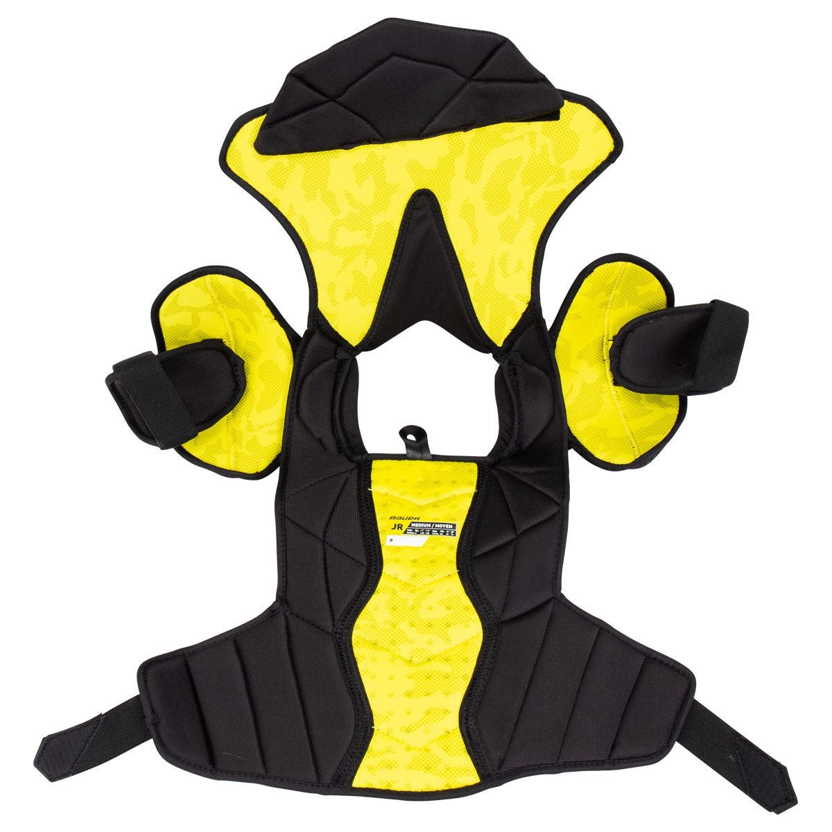 На плечах ви знайдете новий наплічник AMP. Це забезпечить високий рівень захисту від зіткнень і ударів. Для біцепса є регульований біцепс із вставками з поліетилену, які дозволять гравцеві знайти найкращий варіант для своєї руки. Всередині ви знайдете підкладку Bauer ThermoMax, яка забезпечить прохолоду гравця під час носіння цих наплічників.