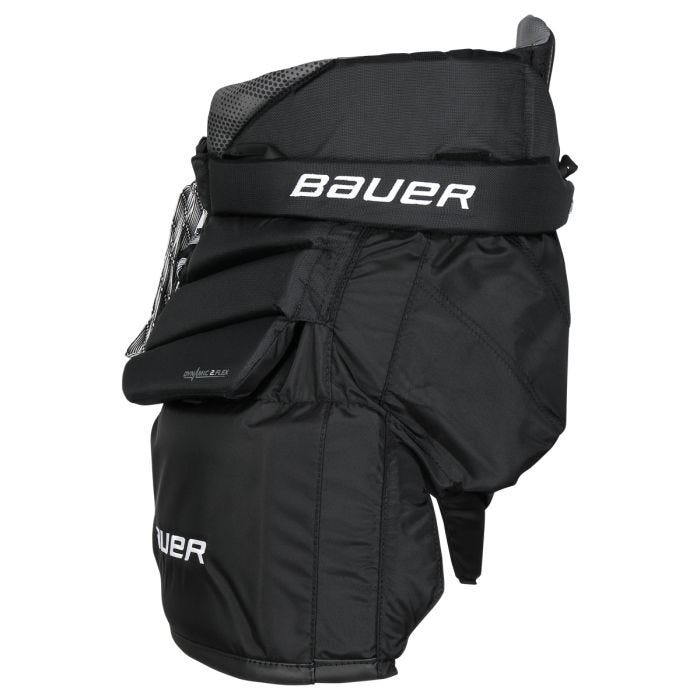 Починаючи зі стегон Bauer Elite, густа піна для об’ємної посадки доступна для захисту та покриття. Dynamic Two Flex із подвійним регулюванням подушок забезпечує покращений захист і мобільність. Все це забезпечує більший вигляд штанів, що забезпечує максимальне покриття та захист.