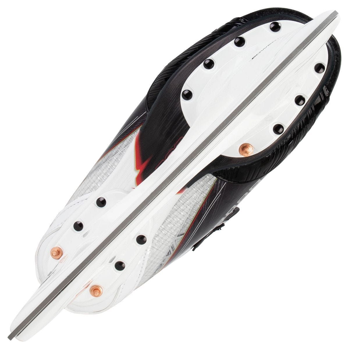 Верхня частина/Гнучкість: Конструкція внутрішньої частини HyperFlex має три стратегічно розташовані виїмки, що дозволяють глибше згинати коліна, створюючи пружинну ланцюгову реакцію, яка допомагає відчути поштовх енергії при відриві пальця ноги від льоду.