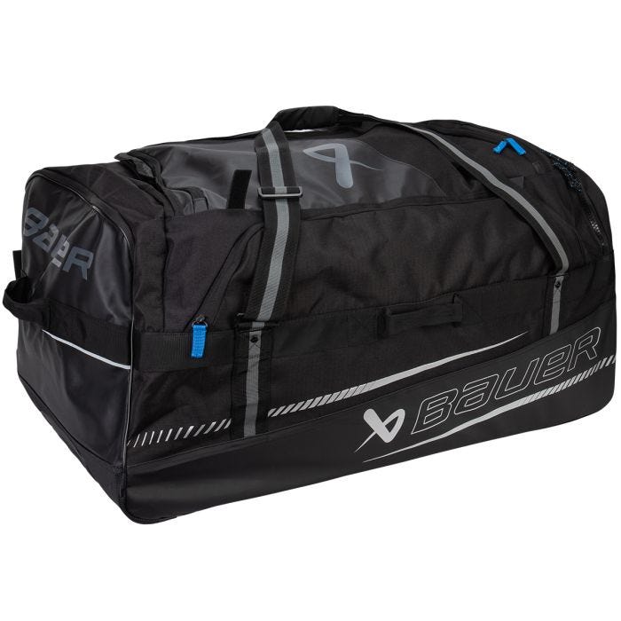 Надзвичайні варіанти перенесення: сумка Bauer 2024 Elite Wheeled Bag має ручки для перенесення на кожному кінці, доповнені регульованим плечовим ременем, обидва зроблені з міцної нейлонової стрічки.Посилена 2-колісна база з ручкою: для тих, хто виснажився після тривалої практики, цю сумку можна легко котити вздовж її міцної 2-колісної бази та висувної ручки.