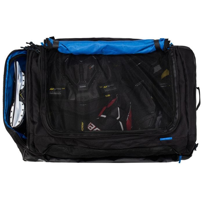 Широкий D-подібний отвір із міцними блискавками YKK: сумка Bauer 2024 Elite Wheeled Bag має просторе основне відділення, яке легко чистити завдяки вологостійким матеріалам сумки. Для легкого доступу ця сумка закріплена міцними блискавками YKK, які забезпечують її широкий D-подібний отвір.Бічна та верхня вентиляція: хокейне обладнання накопичує багато вологи протягом гри. Якщо не висушити належним чином, накопичена волога на спорядженні значно скорочує термін його служби та сприяє накопиченню бактерій, що викликають запах. Щоб полегшити вентиляцію вологи, ця сумка має великі вентиляційні панелі, що згортаються, зверху та з обох боків блискавки.Внутрішня організація з кишенею-роздільником для ковзанів: сумка Elite Wheeled ідеально підходить для гравців, які віддають перевагу акуратній сумці, оснащена перегородкою для кишень для ковзанів і великою внутрішньою панеллю-органайзером для захисту резервних компонентів, стрічки або менших особистих речей.Сітчаста м’яка кишеня для речей: Елітна сумка на колесах Bauer 2024 має дихаючу сітчасту кишеню, яка допомагає залишатися організованим і відокремлювати брудні базові шари від обладнання.Зовнішня кишеня для пляшок з водою: підходить для пляшок з нержавіючої сталі та високих пляшок для спортзалу.
