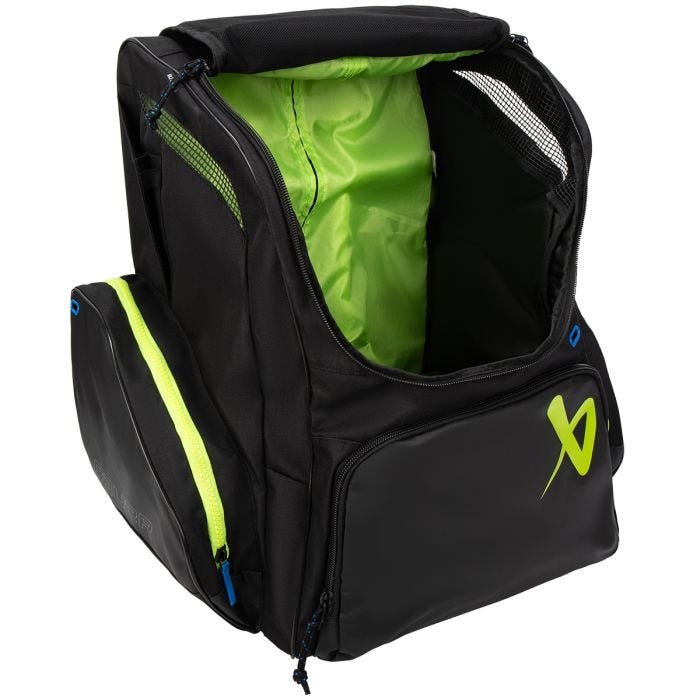 Зовнішня вентиляція: хокейне обладнання накопичує багато вологи під час гри. Якщо не висушити належним чином, накопичена волога на спорядженні значно скорочує термін його служби та сприяє накопиченню бактерій, що викликають запах. Для полегшення вентиляції вологи ця сумка має велику вентиляційну прокладку спереду.Вентильовані кишені для ковзанів: для додаткової організації з кожного боку є окремі кишені для ковзанів із великою вентиляційною прокладкою.