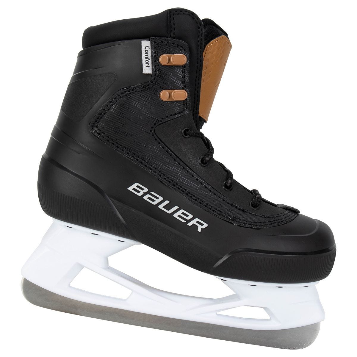 Відповідає вашому розміру взуттяПокращений комір із синтетичної шкіри для більшого комфортуЦільна анатомічна оболонка забезпечить преміальний комфорт і підтримкуУтеплений комфортний вкладиш забезпечить комфортну посадку і збереже ноги в тепліШнурівка з люверсами DТримач Bauer із попередньо загостреними напрямними, щоб ви могли кататися прямо з коробки